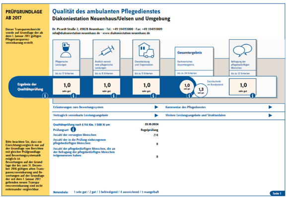 Qualität steht bei uns ganz oben. Erfreulicherweise hat uns der MD das bei seiner Prüfung im Oktober 2024 erneut bestätigt. Alle Teilbereiche wurden mit der Traumnote 1,0 bewertet!
